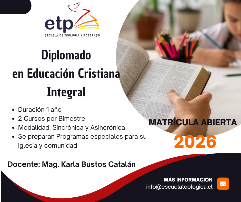 En la Escuela de Teología y Posgrado (ETP) creemos que aprender es una forma de servir. Cada diplomado ha sido diseñado para fortalecer la fe, el pensamiento crítico y la vocación de quienes desean prepararse con excelencia para el servicio a Dios y a su prójimo.